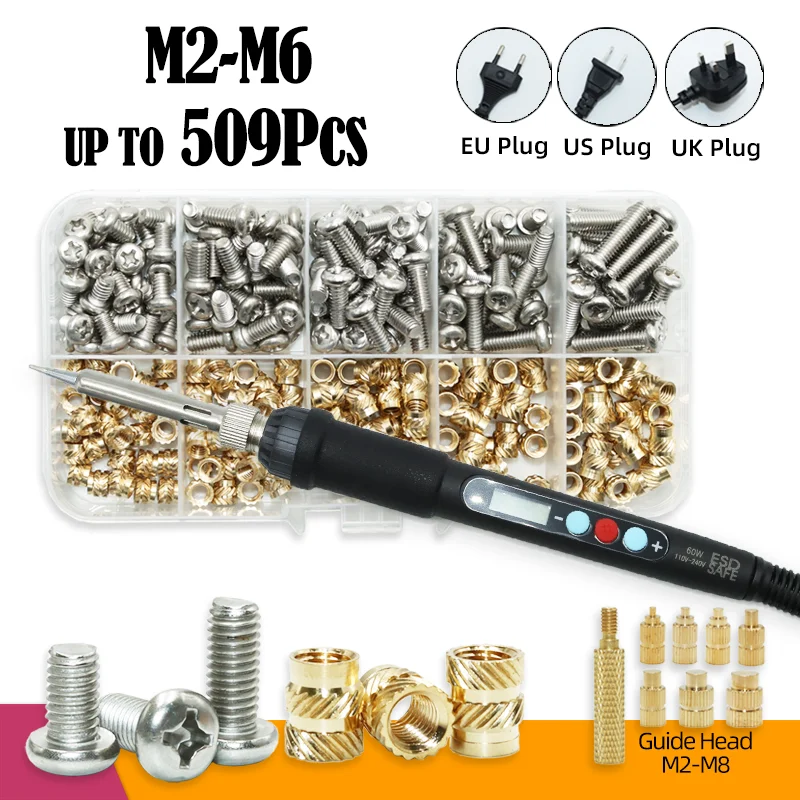 Heat Set Insert Soldering Iron Tip Head M2 M2.5 M3 M4 M5 M6 Hot Melt Insets Nut Brass Embedded Thread Insertion Kit For Plastic