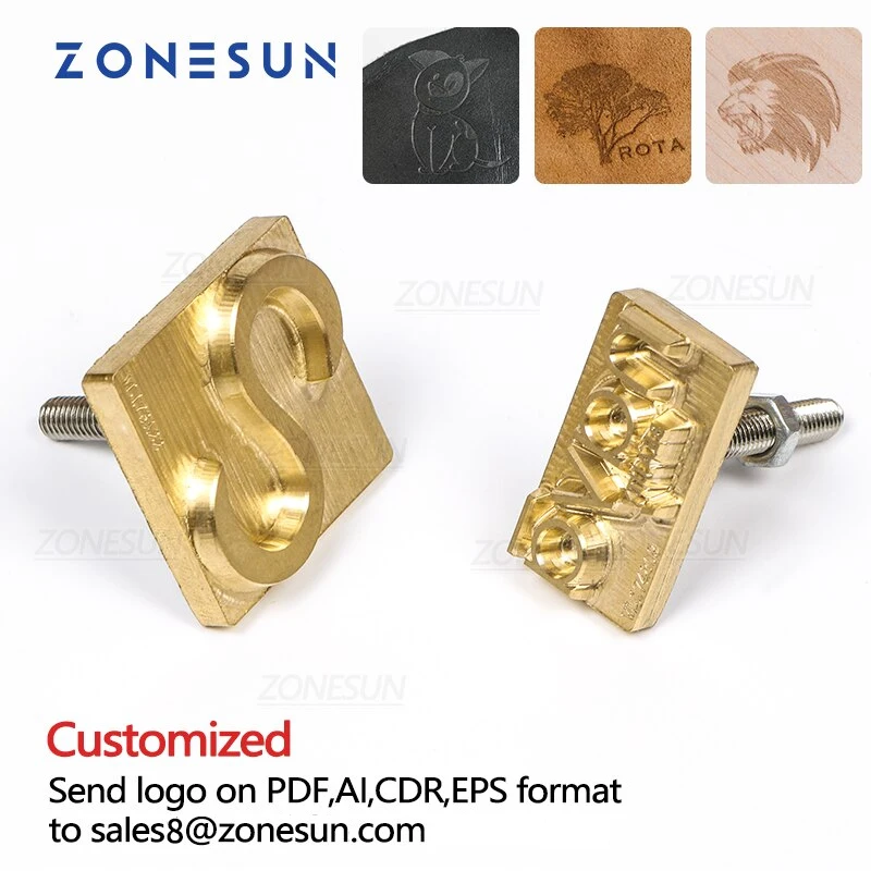 ZONESUN Custom LOGO Brass Mold Stamp Wood Leather Paper Embossing Mold DIY Design Mouldings Hot Foil Stamping Heat Press Machine