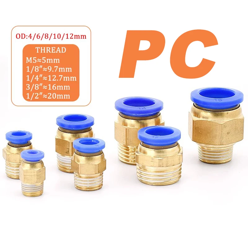 5PCS Pneumatic Fittings PC Air Quick Connector PC4-M5 PC6-01 PC6 1/8" 1/4" 3/8" 1/2" Male Thread Quick Coupling Brass Fitting  Read more