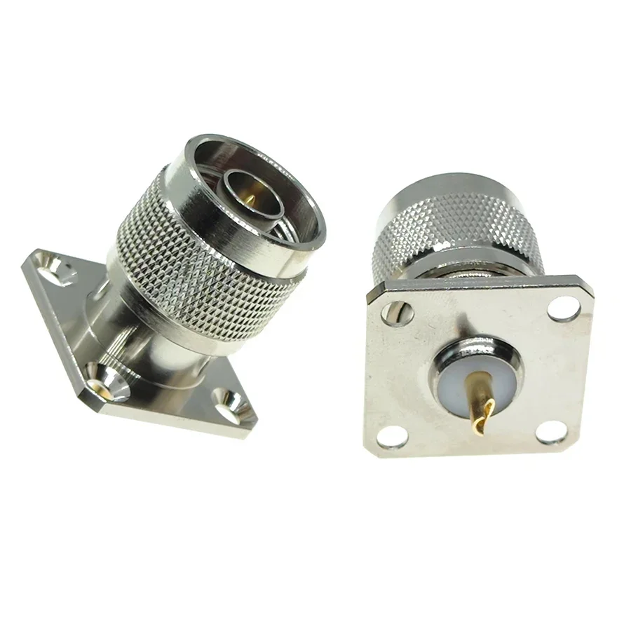 1Pcs RF N type Male Plug RF Coaxial Connector 4-hole Panel Mount flange Nickel Plated Brass 50ohm With Solder Cup