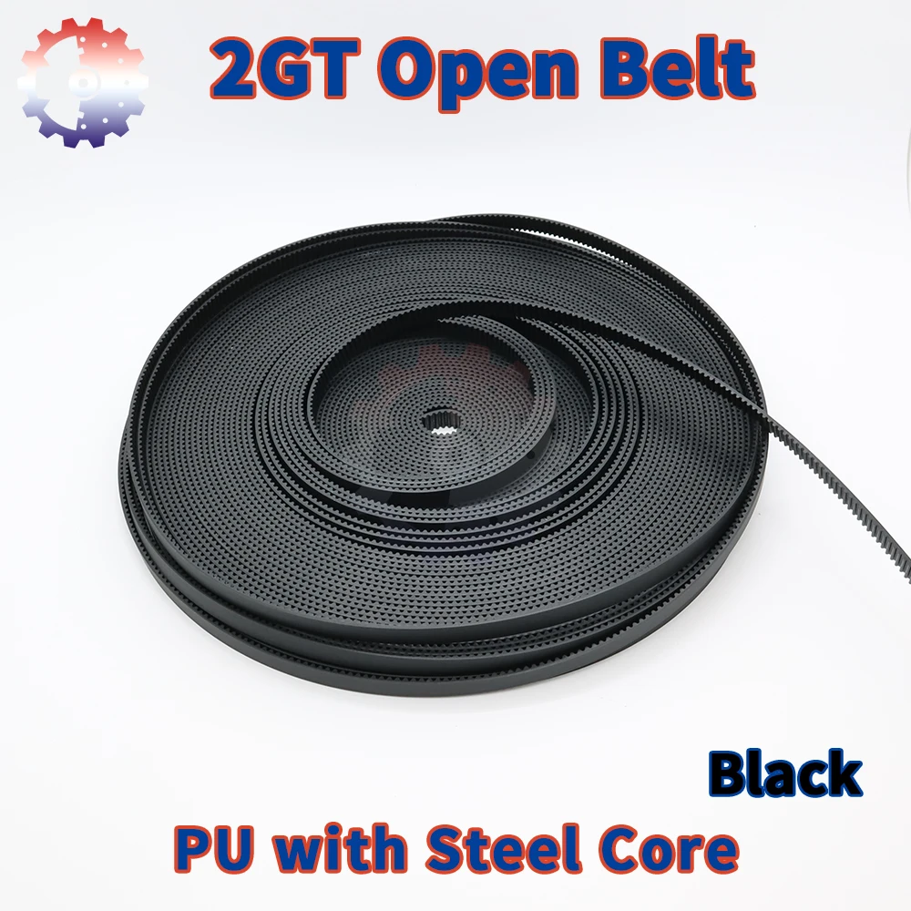 2GT Open Timing Belt Black Polyurethane Steel Core PU GT2 Belt Width 6mm 2MGT Belt 10mm Belts 15mm 2M Open Belt 3D Printer Belt