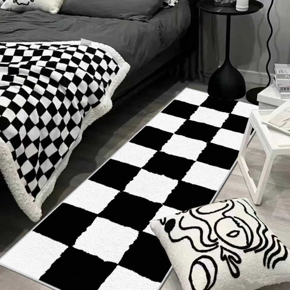 ​VIKAMA Ins Style Faux Cashmere Rug, Long Plush Bedside Runner for Master Bedroom, Living Room Bay Window Home Decor Mat​