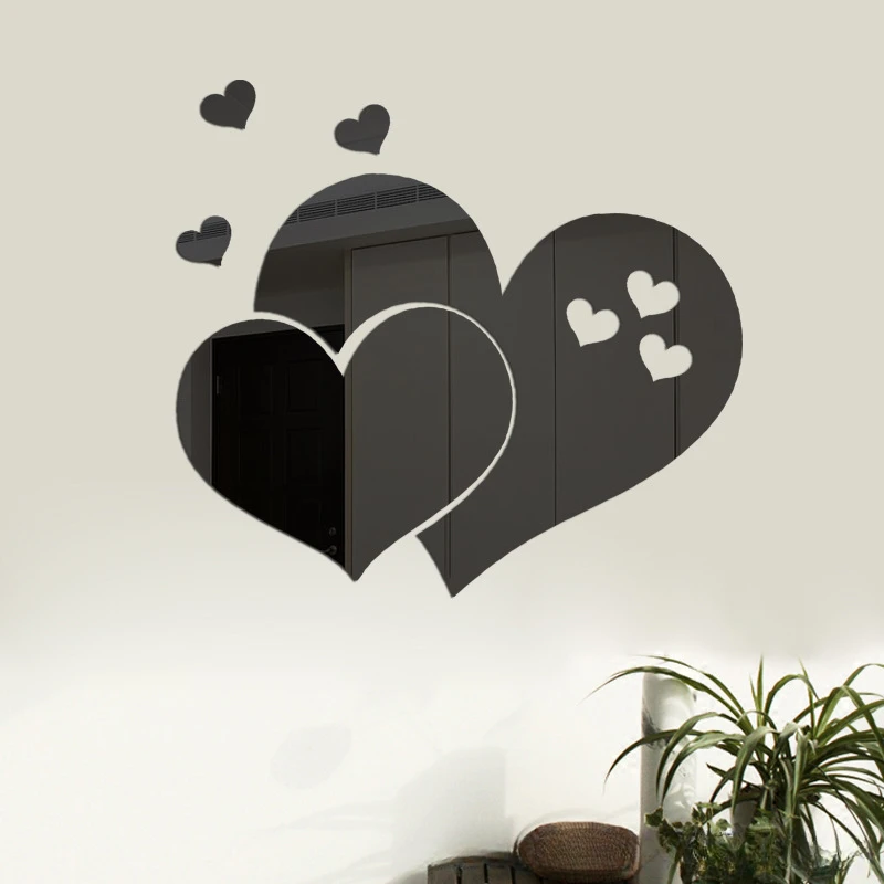 3D Acrylic Wall Stickers Europe Style Hearts Fashion DIY Decals Self-adhesive LOVE Wedding Background Decoration Mirror Ornament