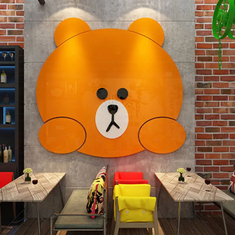 Kawaii Bear Acrylic Wall Sticker DIY Self-adhesive Wall Decal Art Wallpaper Living Room Home Aesthetic Accessories Wall Decor