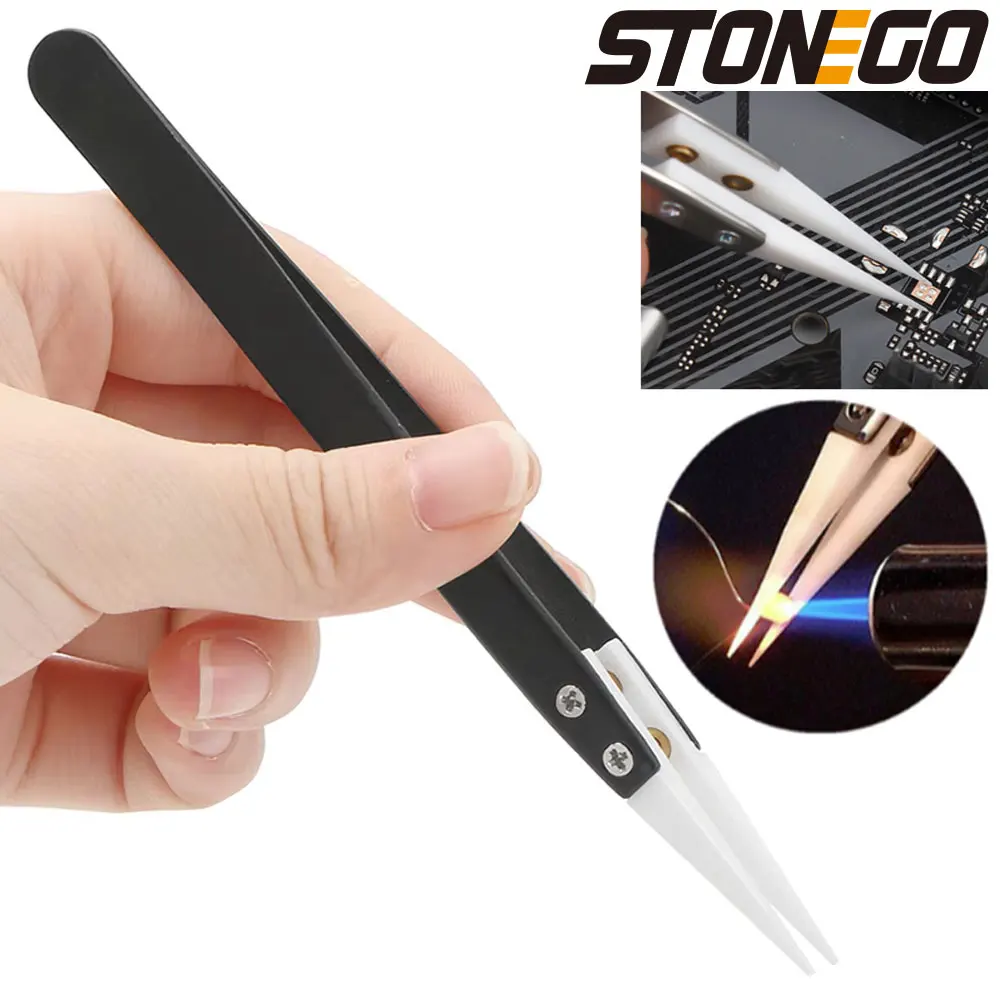 STONEGO Ceramic Tweezers, High-Temperature Resistant, Acid and Alkali Corrosion Resistant, Insulated Clamping Tool