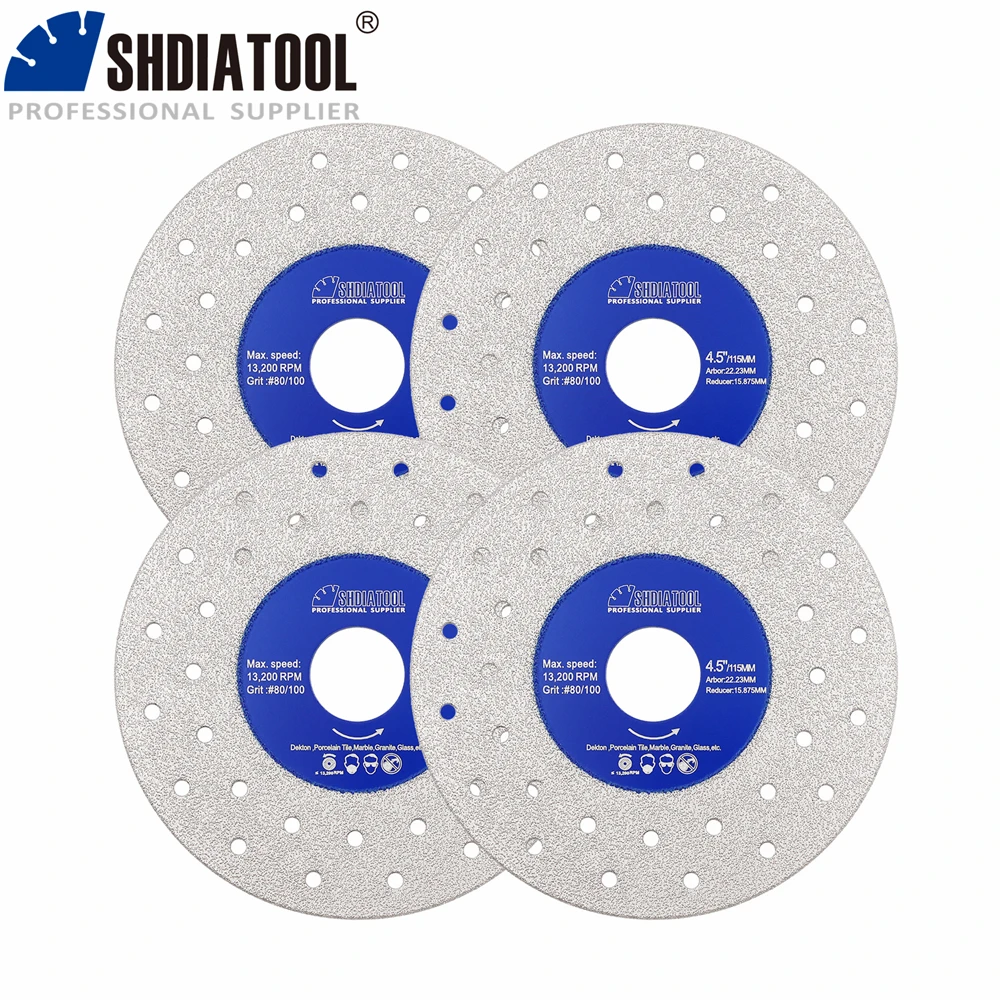 SHDIATOOL 4.5inch Rock Grinding Cutting Disc 4Pcs Ultra-Thin Saw Blade Ceramic Tile Marble Glass Dia115mm Multi Hole Disc Plate