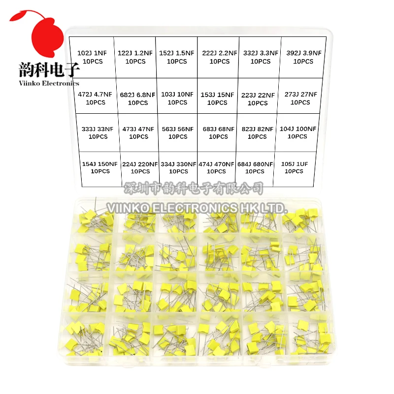 240Pcs Correction Capacitor Assorted Kit 24Values x 10Pcs 100V 102J-105J Polypropylene Safety Plastic Film Capacitors Set  Read more