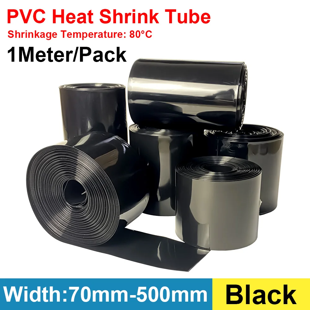 1meter 18650 Lipo Battery PVC Heat Shrink Tube Pack 70mm ~ 500mm Insulated Film Wrap Lithium Case Protection Cable Sleeve Black