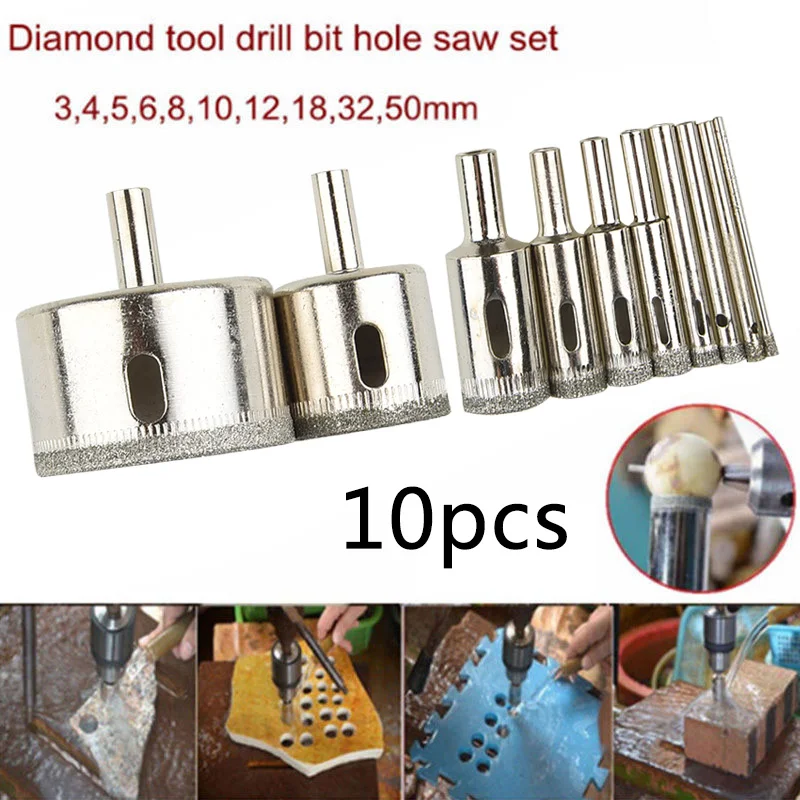10pcs Diamond Hole Openers Glass Ceramics Marble Hole Opener Cutter Drill Bit 3mm 4mm 5mm 6mm 8mm 10mm 12mm 18mm 32mm 50mm