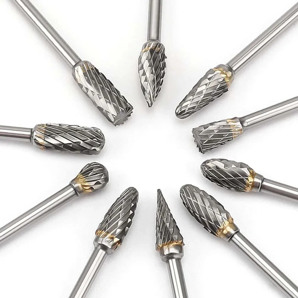 10pcs 3mm Shank Tungsten Steel Milling Cutter Burr Diamond Cut Rotary Dremel Tools Electric Grinding Rotary Tools