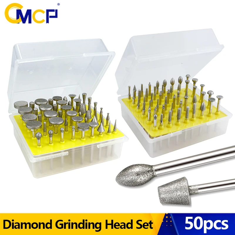 CMCP 50pcs Diamond Drill Grinding Bit Set 3.175mm Shank Diamond Burrs for Dremel Rotary Tool Accessories Grinding Heads Set