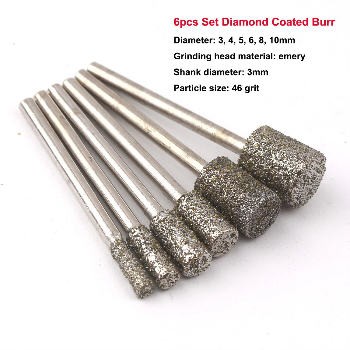 6pcs Diamond Coated Burr Set Grinding Engraving Bit 3mm Shank Cylindrical Rotary File for Stone Carving, DIY, Polishing  Read more