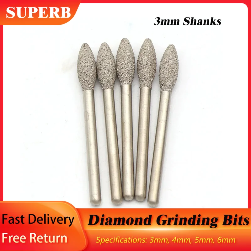 5-10pcs 3mmShank Diamond Grinding Heads 3mm~6mm Long Stone Carving Bits For Polishing Abrasive Accessories Dremel Rotary Tool  Read more