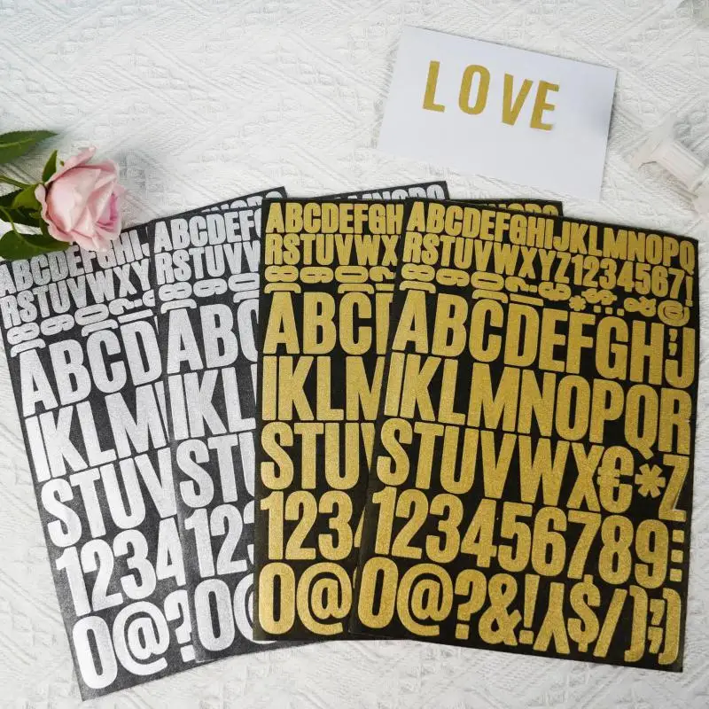 1 Sheet Gold & Silver Alphabet Stickers Adhesive Glitter Letter Number Sticker For Mailbox Poster Bulletin Board Signs Address