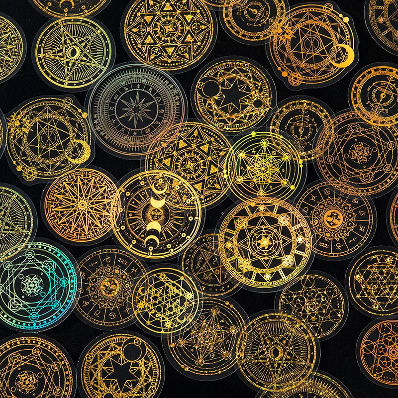 45 Pcs Bronzing Stickers Foil Gold Star Moon Flower Stickers Set Decorative Vintage PET Stickers For Scrapbook Diary Crafts Card