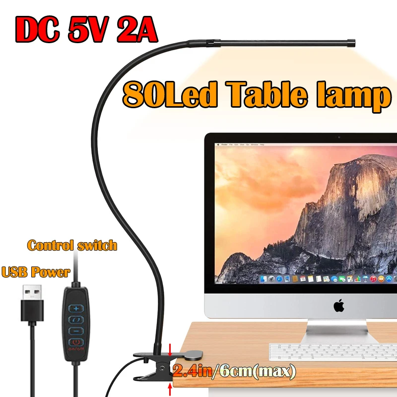 LED Desk Lamp Bedside Bed 360°Folding Clamp Reading Stand Adjustable Lampara USB Powered Eye Protection Table Light For Bedroom