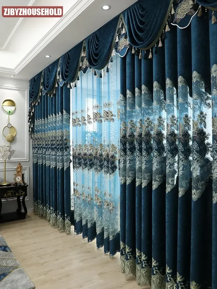European Style Embroidered Applique Finished Blackout Curtains for Living Room Dining Bedroom Luxury Window Room Customize