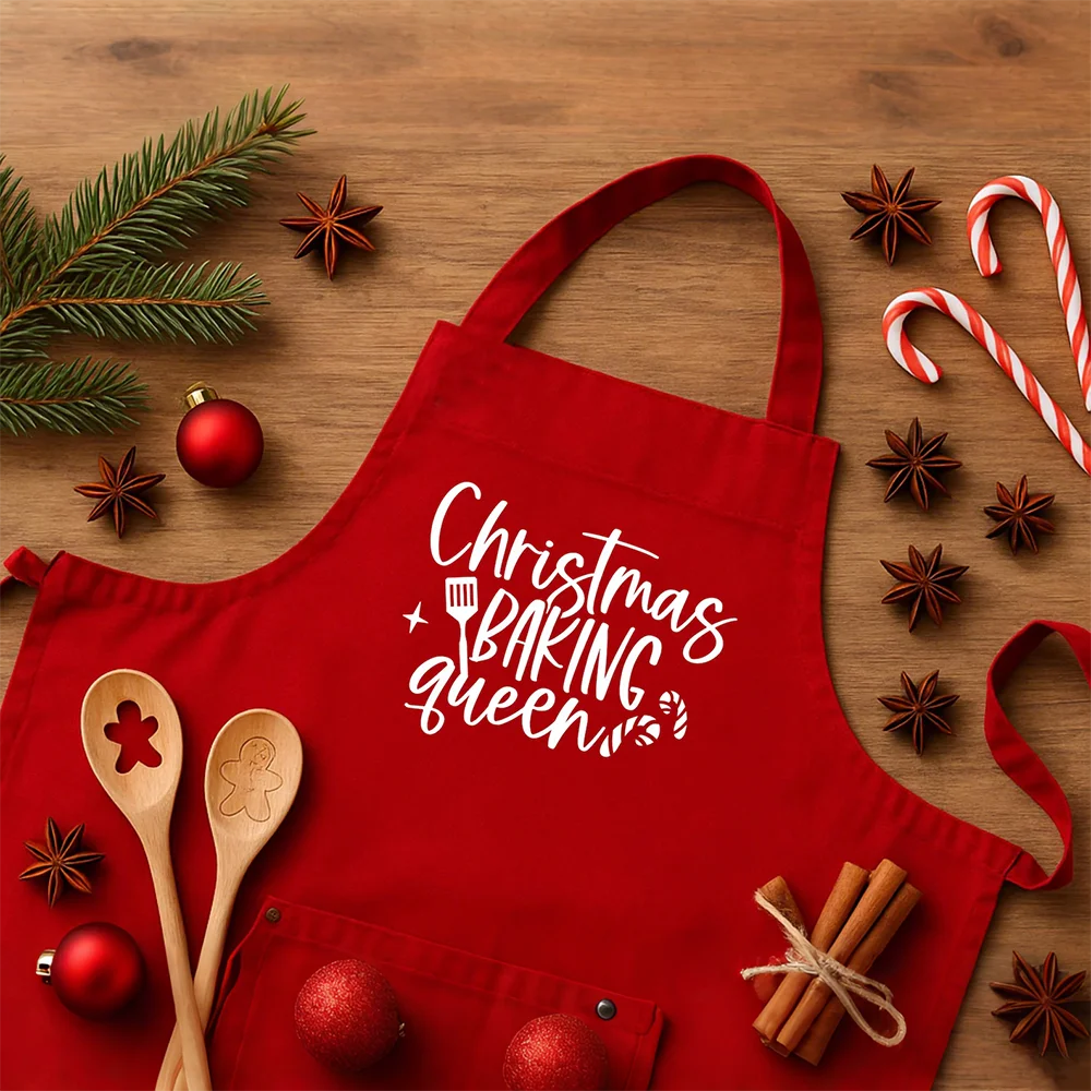 1pcs Personalized Christmas Kitchen Apron Adjustable Cooking Baking Apron Decor Christmas Holiday Gift for Wife Mom Daughter