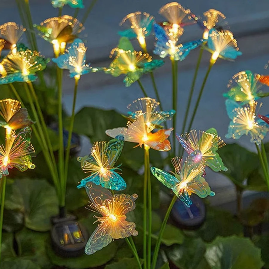 LED solar fiber butterfly ground plug-in light, outdoor waterproof garden lawn decorative light, atmosphere colored light  Read more