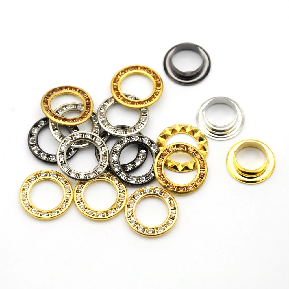 100sets/lot 4 colors 15mm round metal brass rhinestone eyelets crystal diamond grommets shoe accessories christmas decoration  Read more