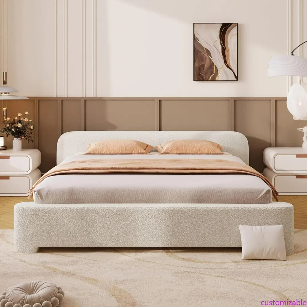 Queen Size Sheffies Upholstered Bed Frame with Headboard, Boucle Fabric Platform Bed Base, Wood Support Bed