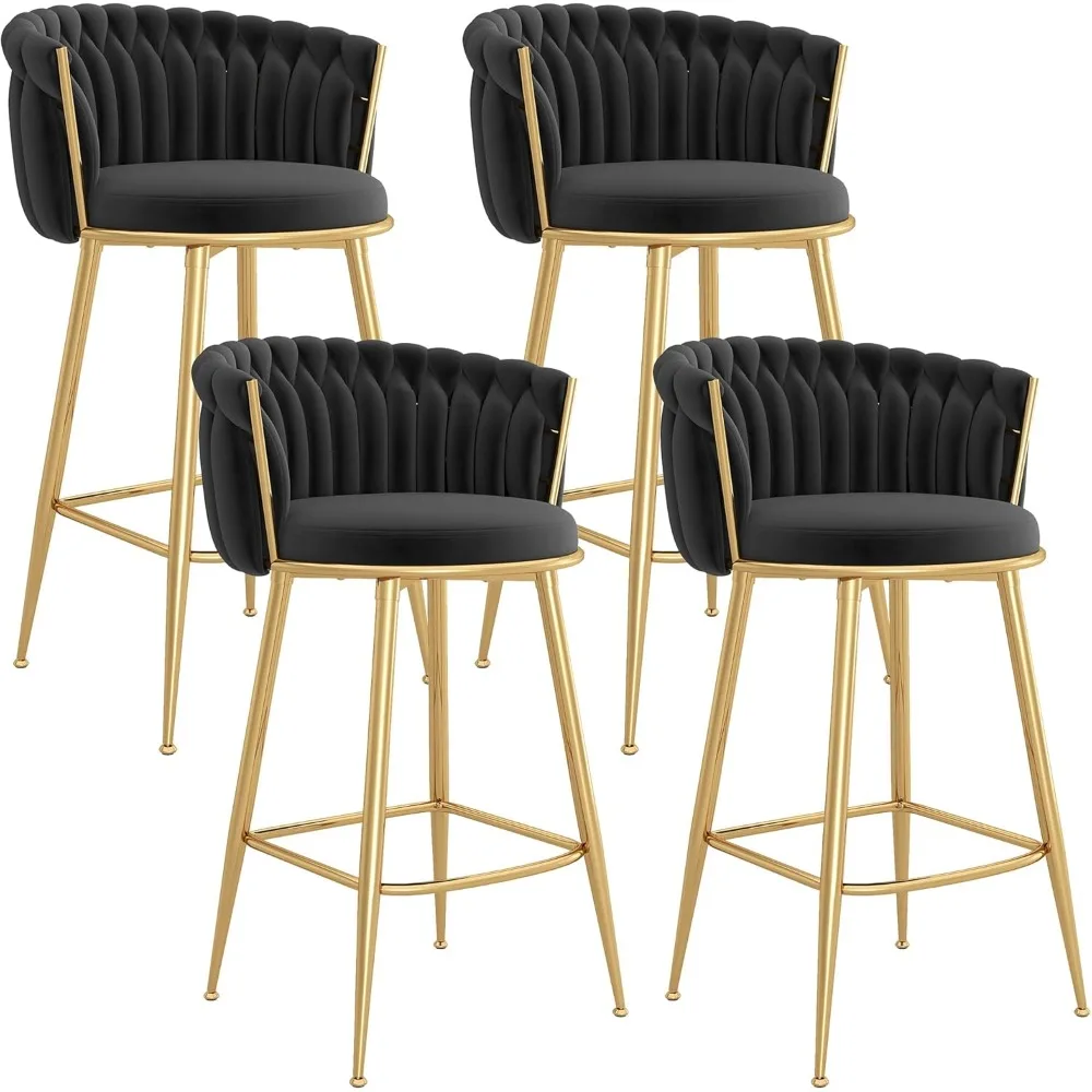 Counter Height Stools Set of 4, Velvet Bar Stools with 27 Inches Upholstered Seat Height, Handmade Woven Back Armrest, Sturdy Go
