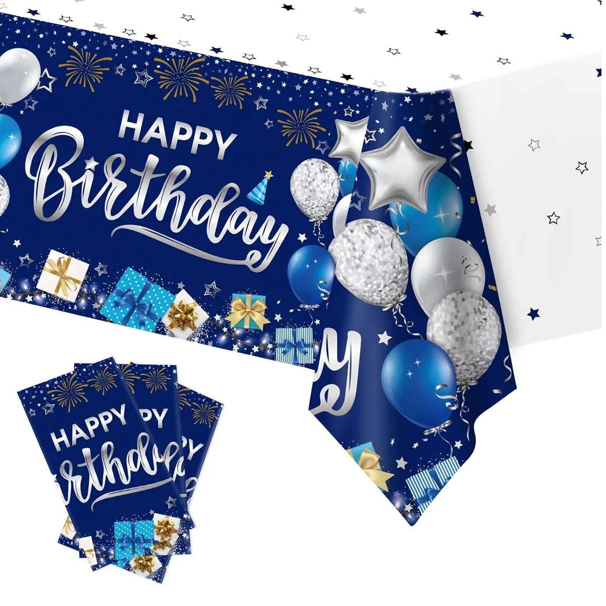 Navy Blue Birthday Tablecloth, A Disposable Plastic Rectangular Tablecloth Suitable for Birthday Parties, Gatherings, Baptisms.