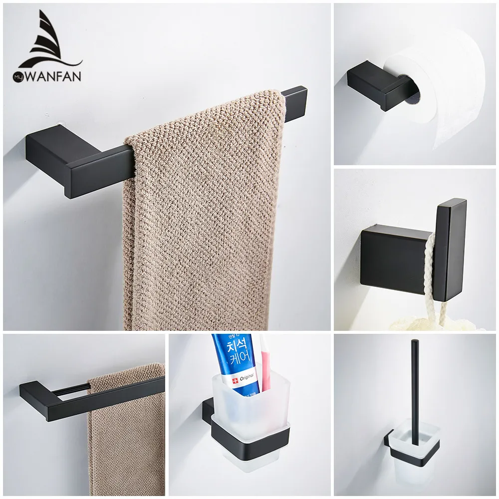 Matte black Stainless Steel 304 Towel Ring Robe Hook Toilet Brush Holder Towel Bar Bathroom Accessories Set Paper Holder 610000R
