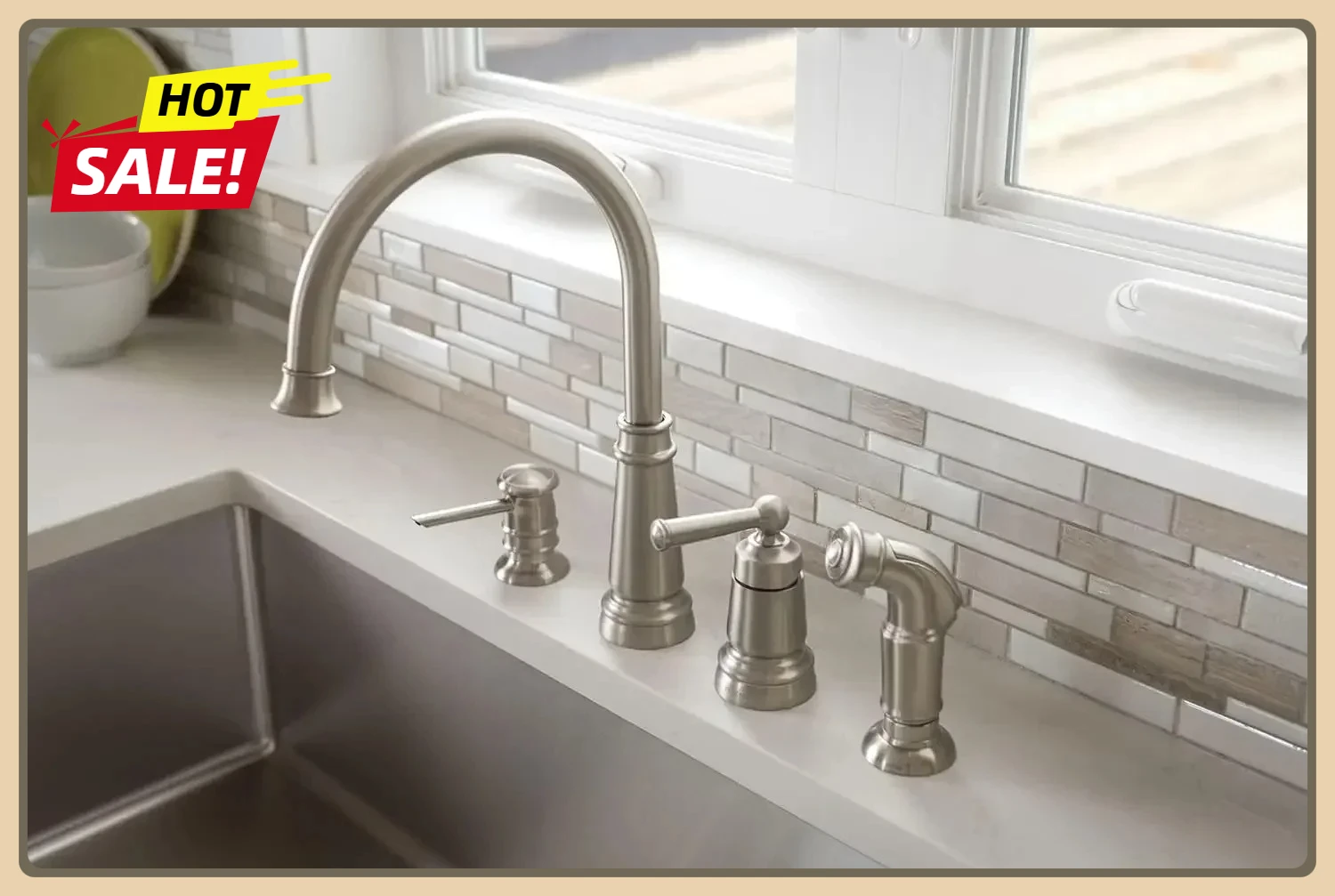 Spot Resist Stainless One-Handle High Arc 4-hole Kitchen Faucet, 87042SRS with Side Sprayer and Soap Dispenser  Read more