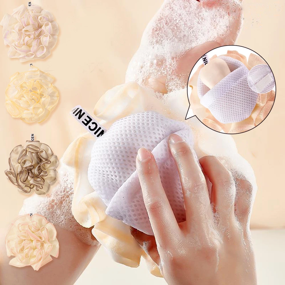 Easy To Clean Personal Care Soap Mesh Pouch Lanyard Bath Puff Fast Foaming Shower Net Bath Flower Scrubbing Bathroom Accessories