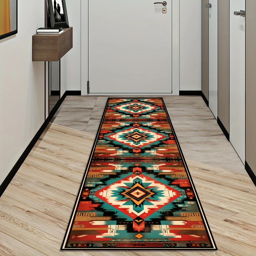 VIKAMA Bohemian Runner Rug Retro Hallway Non-slip Kitchen Floor Mat Balcony Laundry Room Rug Home Decoration