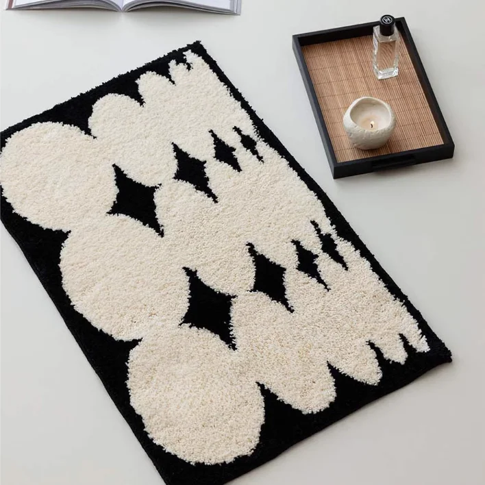 Black White Tufting Bathroom Mat Soft Rug Bedroom Carpet Doormat Floor Anti Slip Pad Aesthetic Home Room Decor
