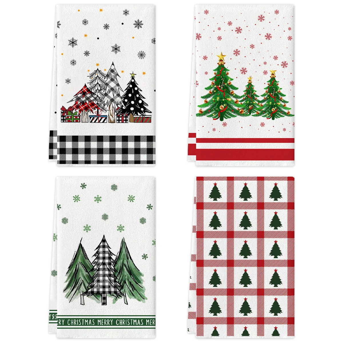 2/4pcs Christmas kitchen towels, green Christmas tree snowflake checkered pattern dishwashing towels, home decoration towel set,