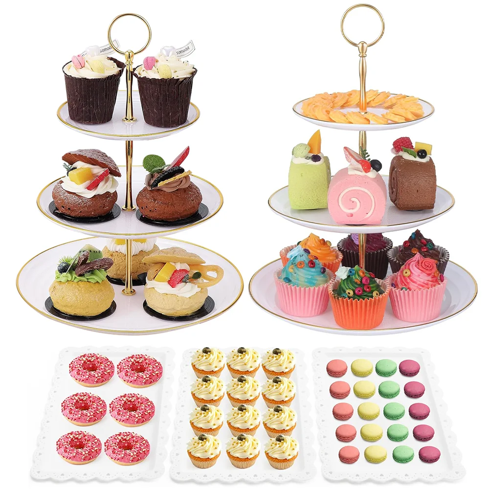 Cake Stand Set with 2 x Three-Tier Cupcake Stands and 3 x Appetizer Trays, for Birthday Baby Bridal Shower Party