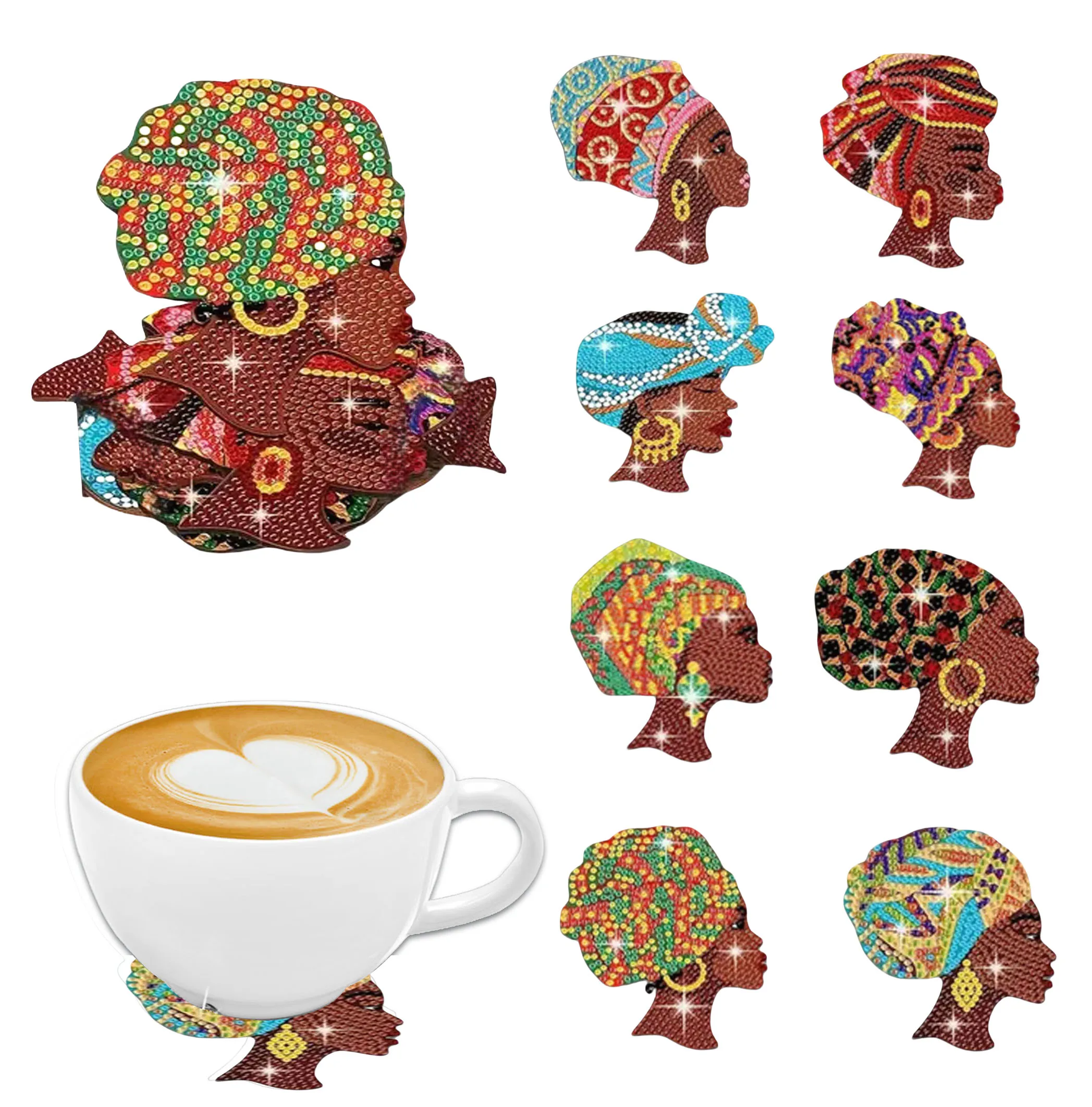 8 DIY diamond painting art sets African American women pattern coasters special shape crystal rhinestone Mosaic craft