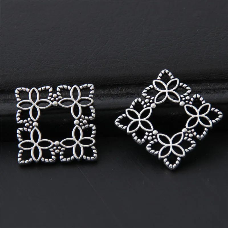 40pcs Silver Color Little Mini Square Wreath Charms Nature Flower Pendant For Women Finding Jewelry Accessories 16mm A3052  Read more