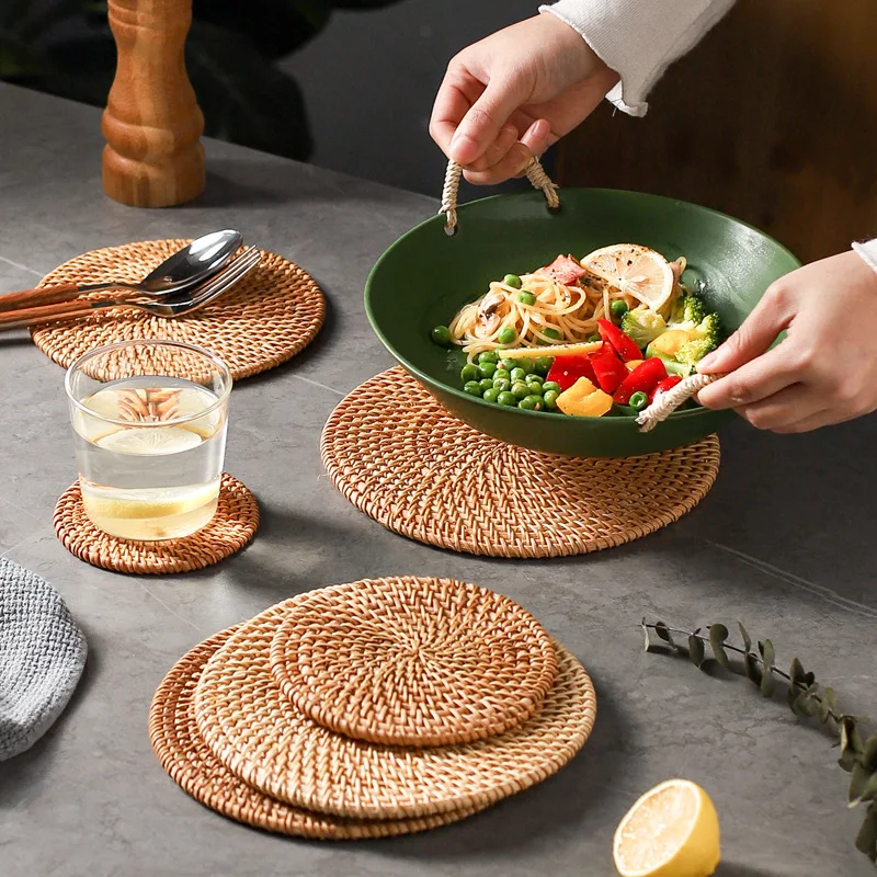 Natural Rattan Woven Teapot Coaster Holder Woven Tea Ceremony Creative Placemat Table Mat Bowl Mat Plate Mat Heat Insulation Mat