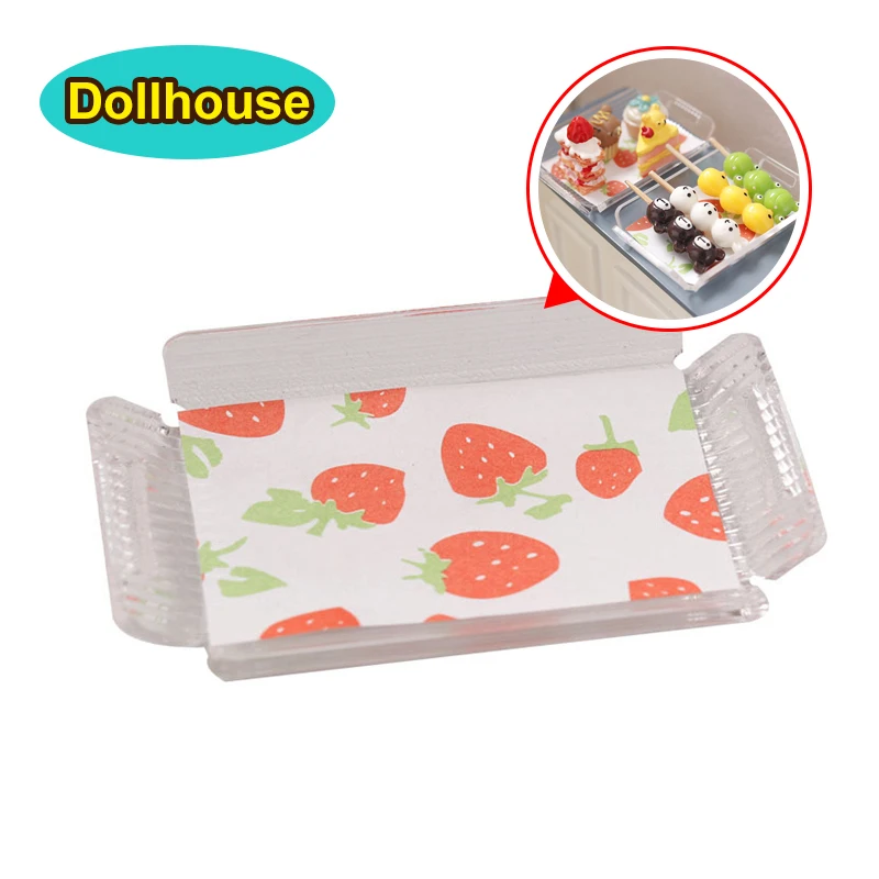 1:12 Dollhouse Miniature Transparent Stripe Tray Mini Tea Tray Fruit Pastry Dessert Storage Tray Dinner Plate Model Decor Toys