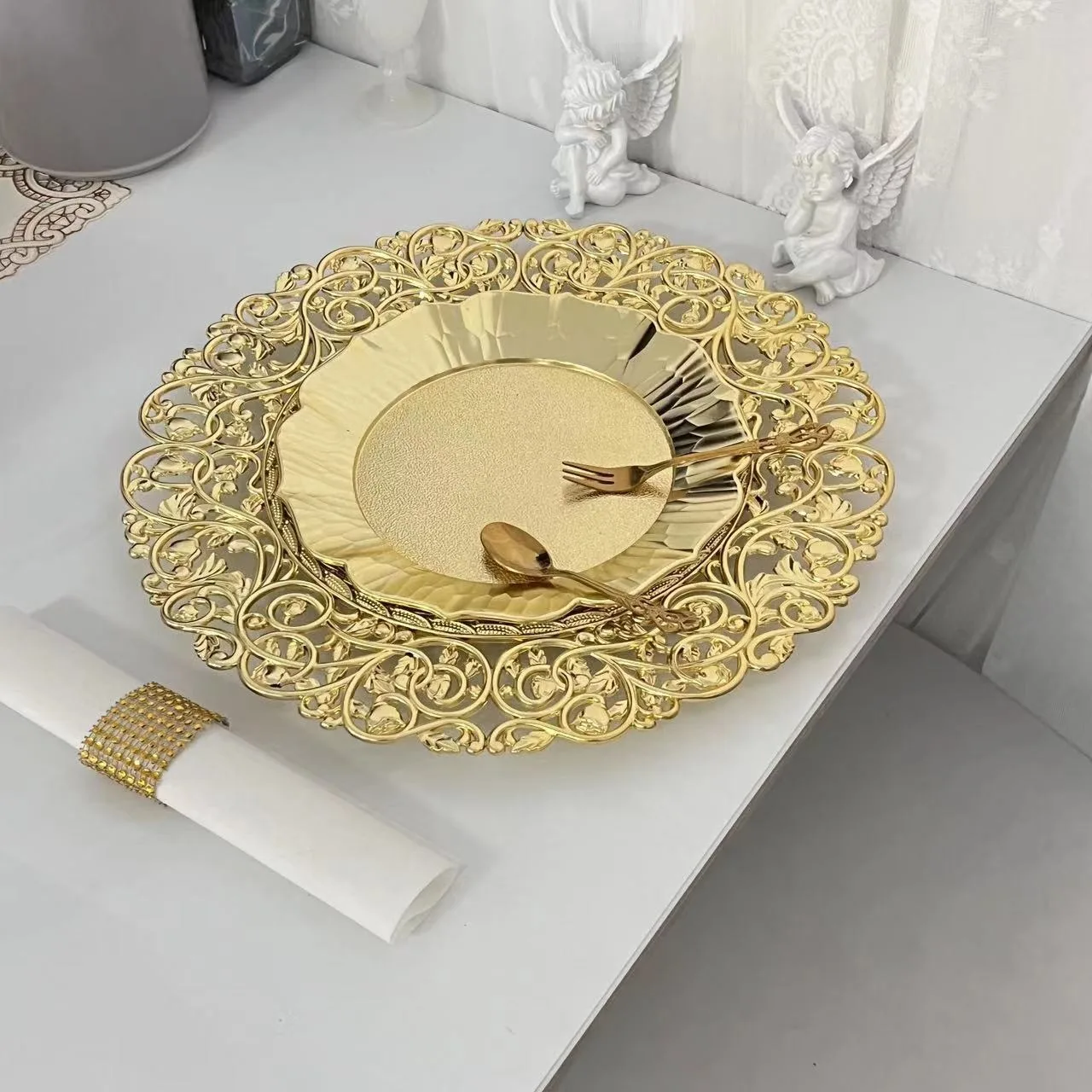 100 PCS New Charge Plate 13 Inches Wedding Centerpieces Event Party Decoration Tableware Tray Show Salver