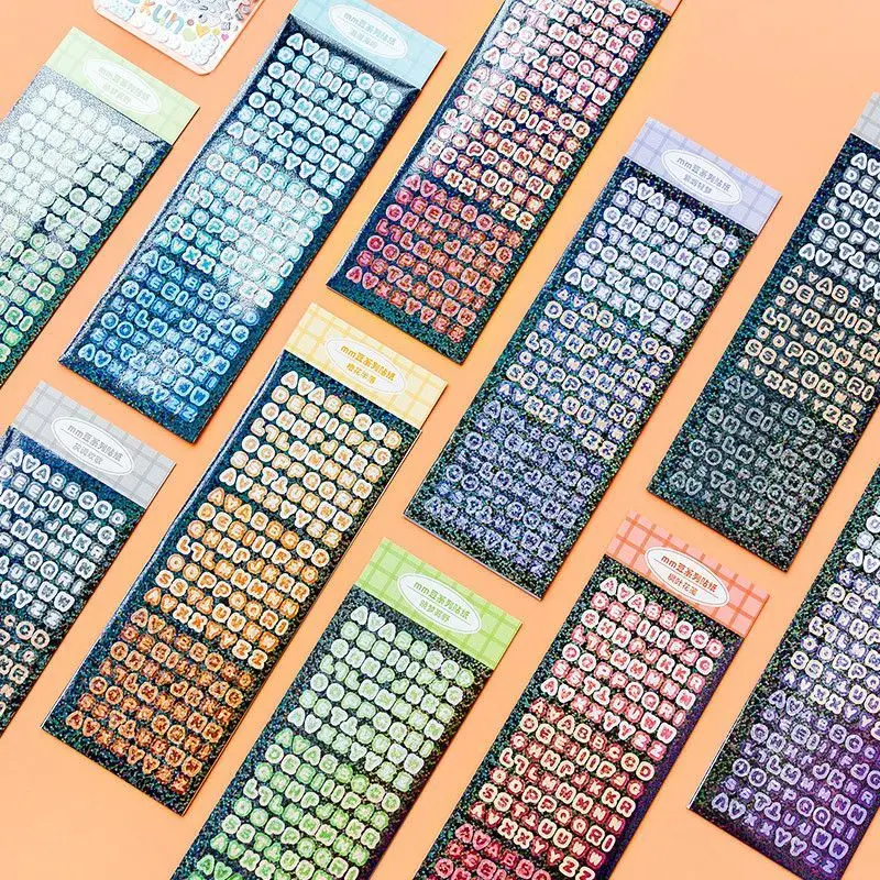 4PCS Korea Cute Planner Stickers Green DIY Creative Alphabet Art PVC Sticker For Kids Student Gift