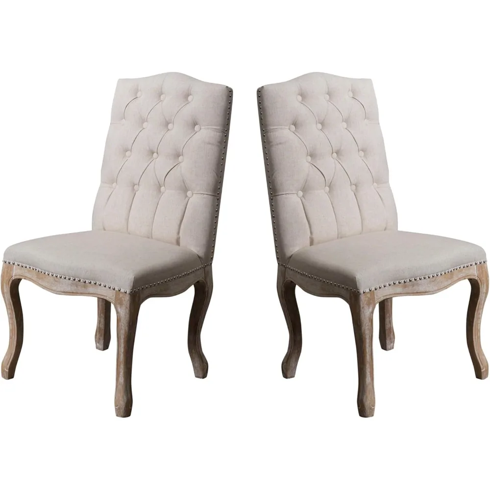 Christopher Knight Home Jolie Tufted Fabric Weathered Hardwood Dining Chairs, 2-Pcs Set, Beige