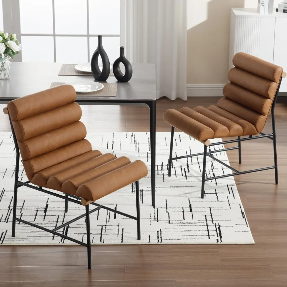 Modern Upholstered Dining Chairs Set of 2, Brown PU Leather Dining Room Chairs with Tufted Back & Cushion, Comfy Armless Kitchen