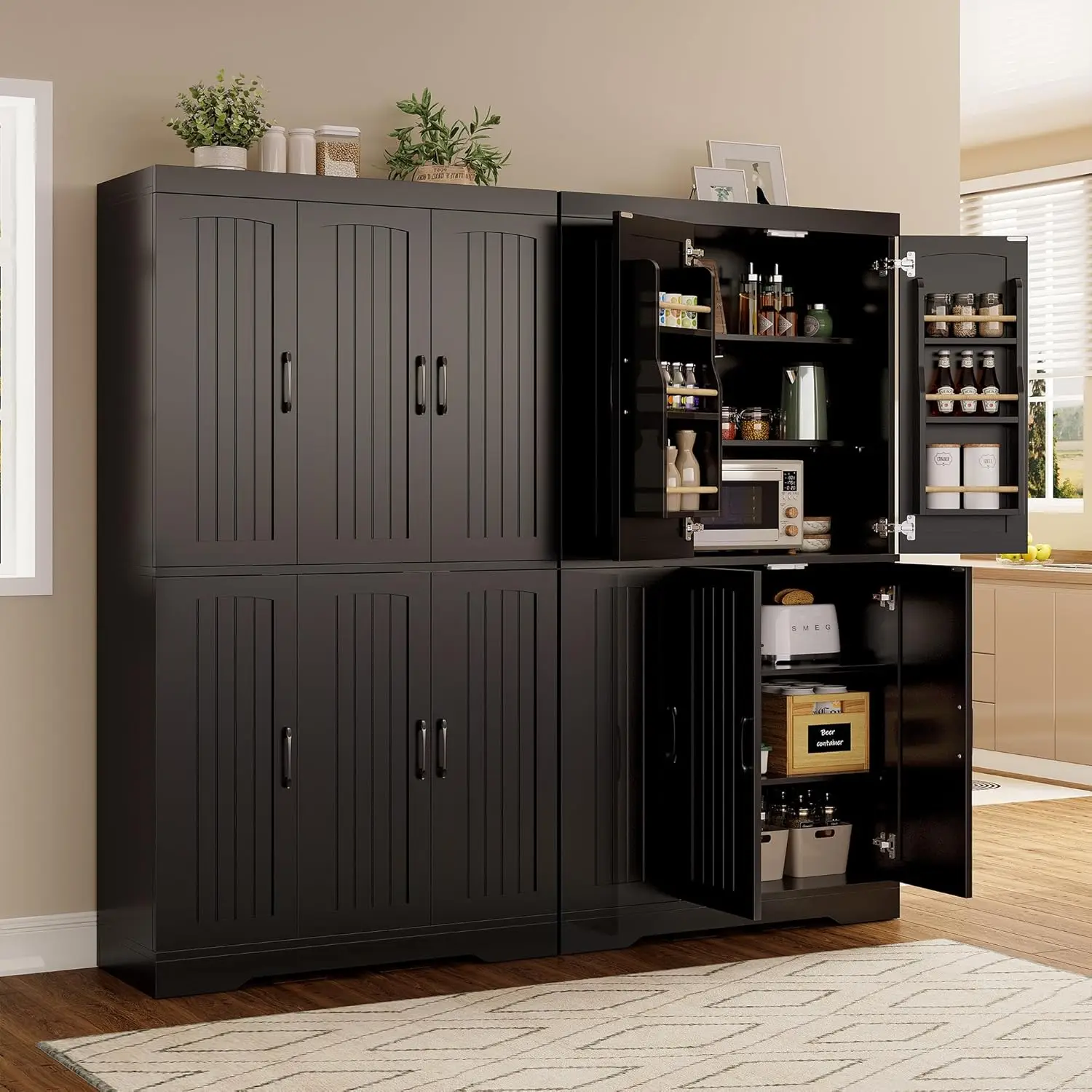 IRONCK Kitchen Pantry Storage Cabinet, Modern Food Pantries with 12 Shelves, 2 Door Racks, Adjustable Shelves for Kitchen
