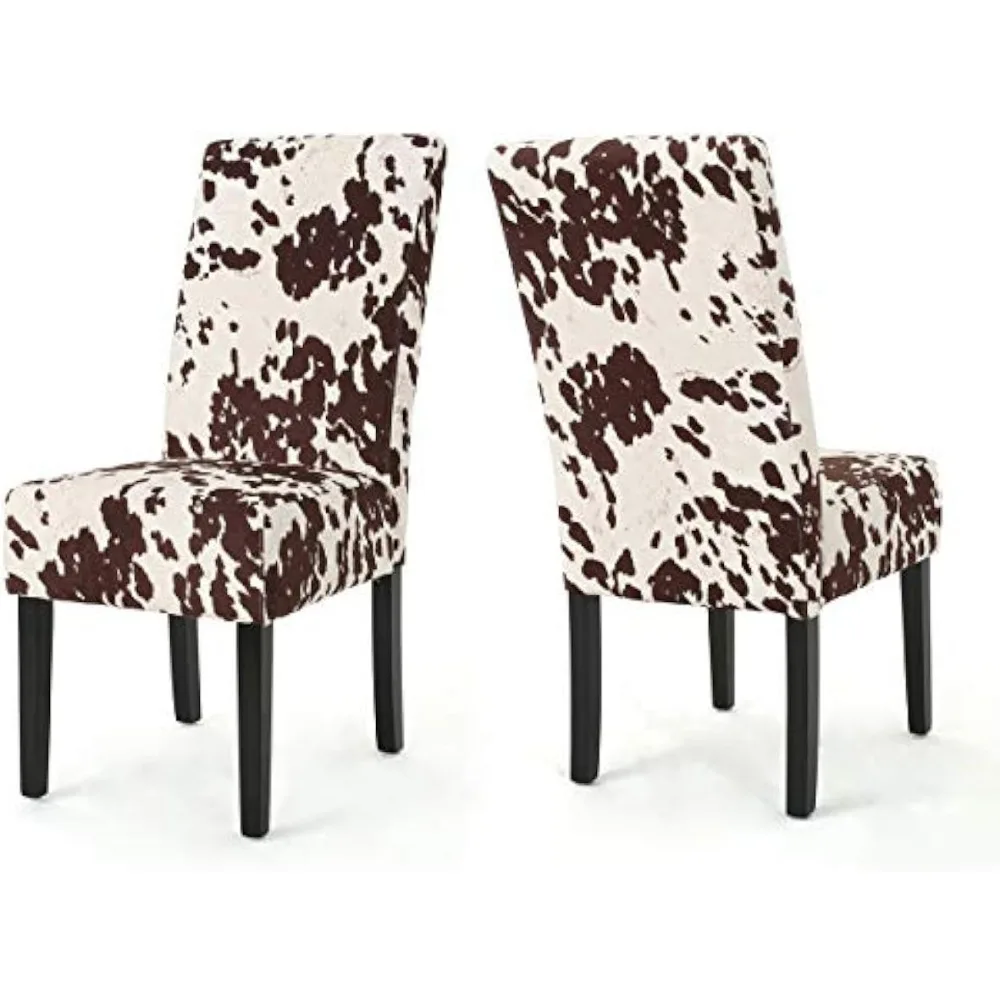 Pertica Contemporary Velvet Dining Chairs, 2-Pcs Set, Milk Cow / Dark Brown