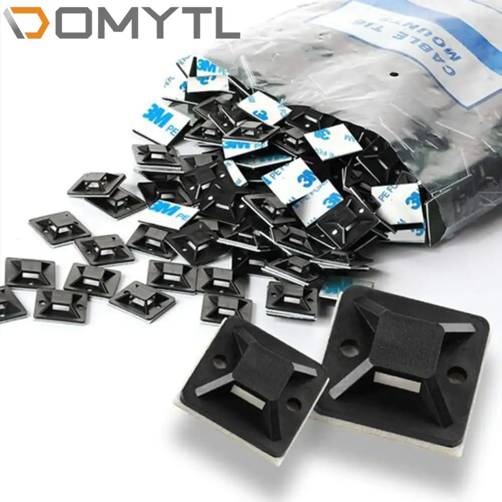 100PCS 3M Adhesive Backed Cable Ties Mount Holder Cable Wire 20MM X 20MM Black