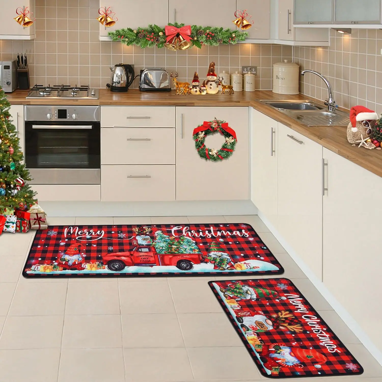 VIKAMA1/2pcs Christmas Atmosphere Doormat Noise Reduction Non-Slip Kitchen Floor Mat Entrance Place Carpet Home Decoration