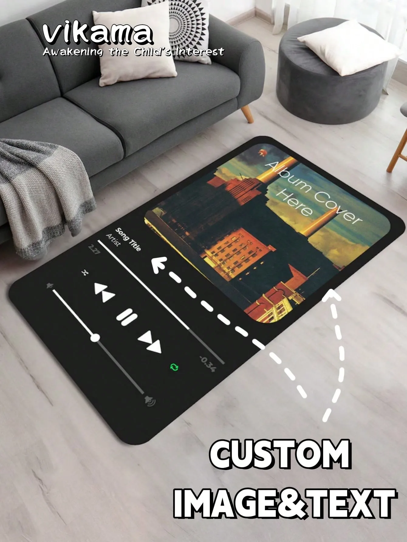 VIKAMA Custom Entrance Carpet Custom Music Album Flannel Mat Hypoallergenic Flooring Suitable for Music STEAM Games