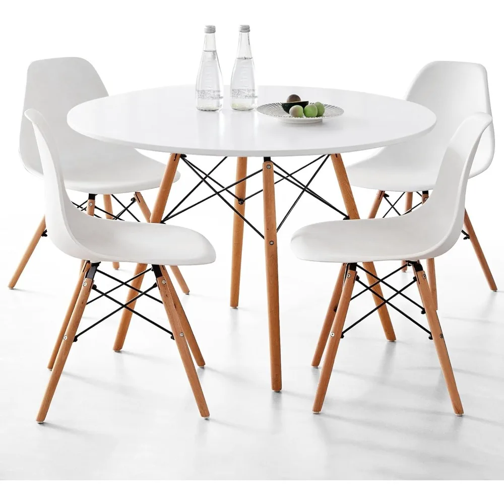Round Dining Table Set, Small 35.5 Kitchen Table Chairs Set of 4, Space Saving Furniture, Plastic Seats, Solid Wood Legs
