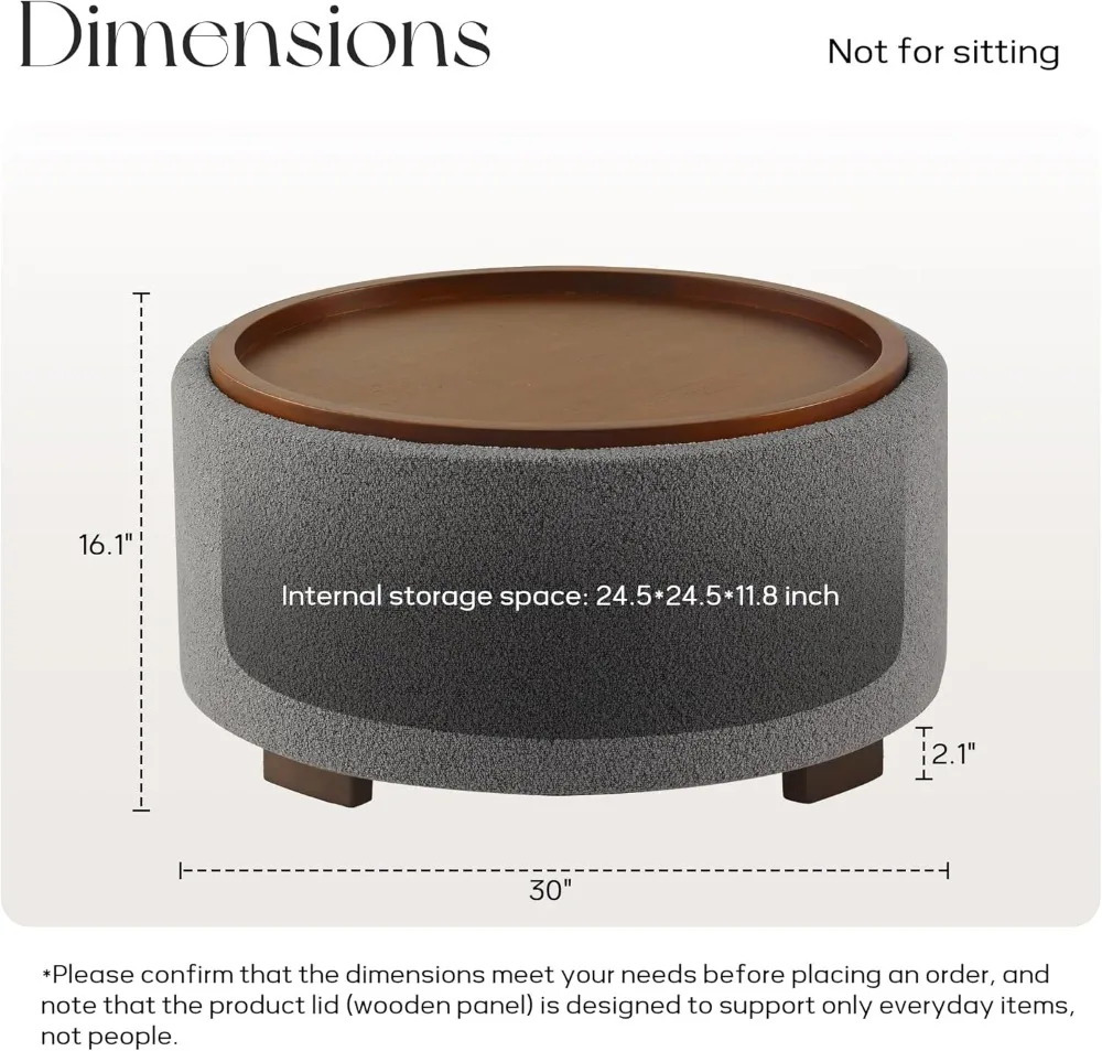 30 Inch Round Storage Ottoman Coffee Table, Modern Boucle Fabric with Lift-Off Lid and Solid Wood Legs for Living Room, Bedroom