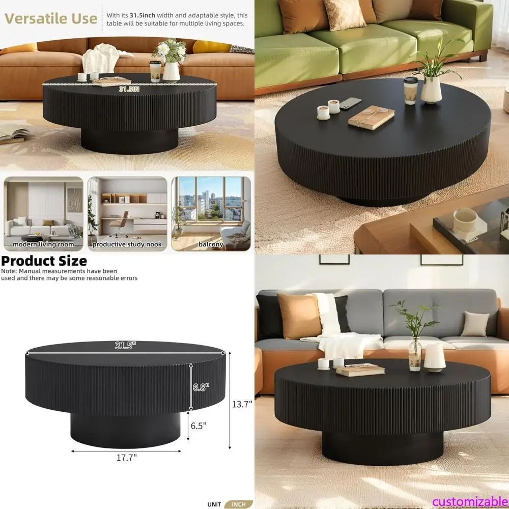 Sturdy Round Coffee Table with Wooden Center, Suitable for Living and Reception Rooms, Easy Assembly, Black
